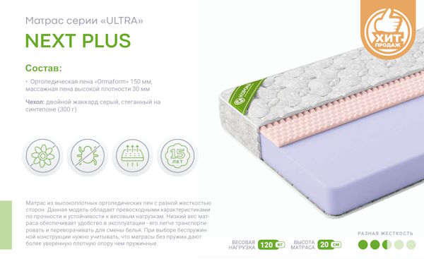 | Подпись к товару | Max. вес на одно спальное место - 130 кг, Беспружинный, любые размеры матрасов |