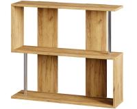 Модель выполнена из ЛДСП и дополнена двумя хромированными штангами. Стеллаж – идеальный вариант для размещения предметов декора, сувениров и памятных вещей.